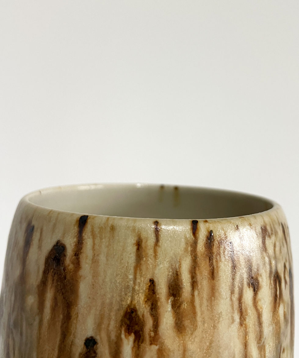 Mein Ziel ist es, die Gegebenheiten und Eigenschaften des Rohstoffes in ihrer reinen und individuellen Schönheit zu betonen, indem ich ihrer puristischen Natur Raum gebe. Gleichzeitig schätze ich es, mit verschiedenen Farbtönen einer Glasur zu experimentieren, um die Besonderheiten des Tons zu unterstreichen, aber nicht zu überdecken. Hier sind Lebensmittel- und Säurebeständigkeit bei Gebrauchskeramik besonders wichtig. Durch die Balance unterschiedlicher visueller Effekte, erzeugt das Werkstück als Ganzes eine harmonische Gesamtwirkung, die seine einheitliche Ästhetik vollendet.